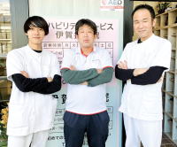 当院では、痛みの部位などに徒手療法や物理療法などを用い痛みや関節の可動域制限に対し柔道整復師が、日々施術をしております。患者様のなかには、痛みや体力の低下から今後の生活に不安を持っている方々も多くいらっしゃいました。そのような声を聞き、伊賀接骨院ではリハビリを中心としたデイサービスを開設することになりました。